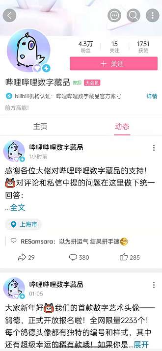 1、在哔哩哔哩中搜索,进入“哔哩哔哩数字藏品个人中心”。