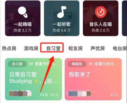 第二步,滑动到自习室,选择喜欢的房间进入即可。