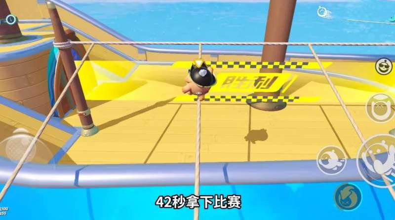 6、滚动刚好结束,我们再接跳扑,趁着风圈往前一扑,蹭上复位点,终点之前上绳索小跳一下。