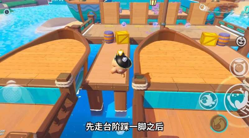 4、前面又想骗我推东西,我偏不,先走台阶,踩一脚之后,来到两船中间。