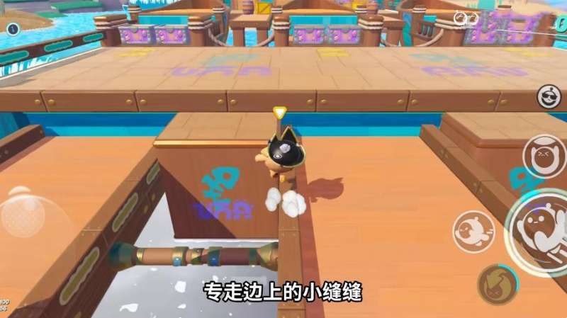 5、前面的最后一个桥梁看起来有点远,走到中间这里有一个小台阶,开启滚动之后,空气跳也能直接过来,不需要推桥;