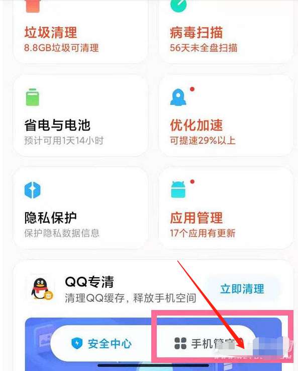 1、开启手机管家app,选择下方的手机管家。