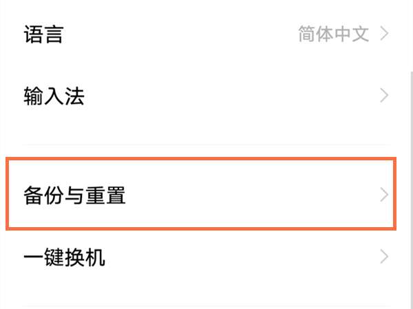 2、点击备份与重置。