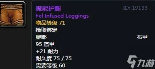魔能护腿:腿部,出自荆棘谷世界BOSS卡扎克掉落,专注秘药。