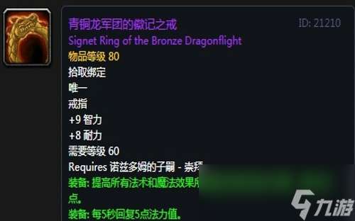 青铜龙军团的徽记之戒:戒指1,出自安其拉副本任务获取,无法附魔。
