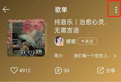 1、打开QQ音乐,选择歌单,点击右上方三个点。
