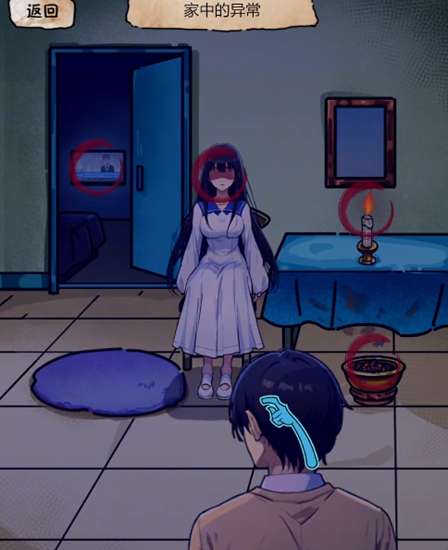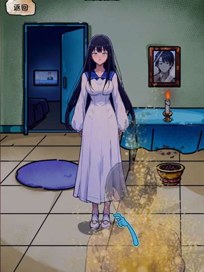 4、点击白衣女人,白色蜡烛,烧纸盆,移动地毯找到钥匙,用钥匙开门,点击新闻。