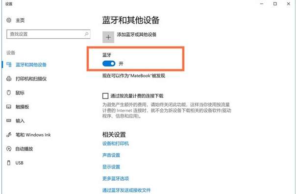 在非 Apple 设备上,该方法也同样适用,只是开启蓝牙设置的方法不同,请进入电脑蓝牙设置并确保蓝牙已打开。