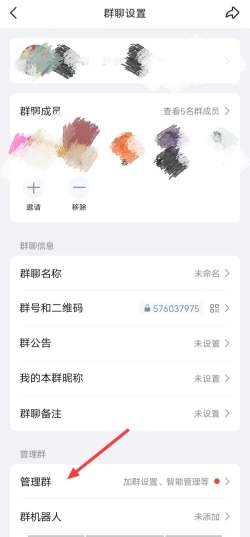 3、打开群聊后,在右上角找到三条横线并点击它。在弹出的界面里找到“管理群”。