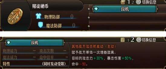 都是又必中和暴击的效果了,再去选择一个赌徒硬币辅助,赌徒硬币-50命中,如果打高闪避有必中,打低闪避减50命中一样不会打空,30%攻,50%暴伤起飞。