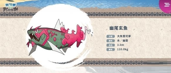 与伙伴们的亡魂一起战斗:洗翠地区的野蛮鲈鱼进化后的样子。野蛮鲈鱼成群溯河而上时,强健的个体身上会聚集在严酷路途中失去性命的伙伴亡魂,并且进化。牠会与附在身上的灵魂一起战斗,灵魂们会像是有自己的意识般地攻击对手。