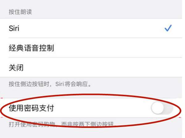 3、选择【使用密码支付】,然后点击关闭即可。