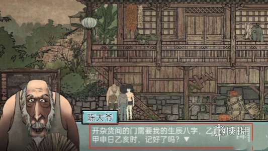 8、打开盒子可以得到一块拼图碎片和一本书籍,用拼图补齐墙上的缺少的一块图画。 9、在床左边把背包放下,来到客厅进行对话。 10、完成对话剧情后回到房间睡觉,回到客厅点击大门,完成小游戏即可开门。 11、在房子左侧从陈大爷的对话中得到陈大爷的生辰。