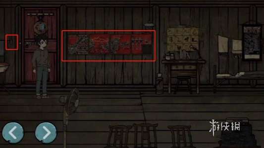 3、在2楼通过对话得到第1个房间是石老师的,第2个房间是小雅的,第3个房间是主角的这个信息。 4、到达2楼第3个房间的门口,点击竹篮子里的符号环。 5、进入第3个房间,点击打开灯,完成右边的墙壁上三个拼图小游戏。
