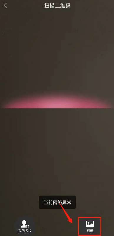 3、就可以进入扫描二维码的状态了,点击相册,选择自己的二维码名片,即可登录。