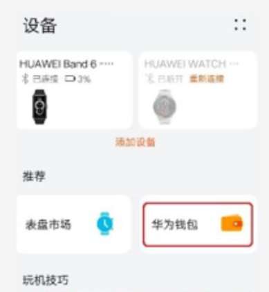 2、返回到设备,点击已连接的手环,选择华为钱包。
