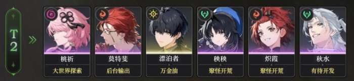 T2:相比于其他三个梯队,该梯队的共鸣者在角色属性方面略显薄弱,可作为前期新手过渡使用,但强度不高,后期若想要强度便需要更换。