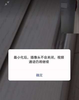 3、此时会出现“最小化后,摄像头不会关闭,视频通话仍将继续”提示,点击【确定】即可。