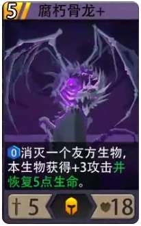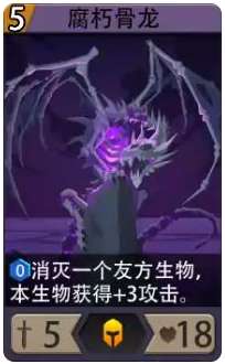 5费生物卡,5攻18血,(0费)消灭一个友方生物,本生物获得+3攻击。