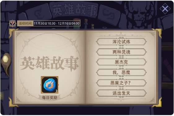 活动期间,每日可任选一个英雄故事进行挑战,失败无惩罚,通关则获得奖励,每日一次,04:00刷新。