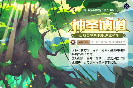 活动期间,在[冒险模式]或[梦魇模式]下击败每一层的首领,均可获得随机数量的‘源生精华’;每日上限为20个。所得的‘源生精华’将直接放入玩家的背包内,可用来合成‘星辰之耀’;星辰之耀打开后能获得魂石、魔晶等物品。