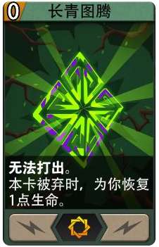 长青图腾:无法打出。本卡被弃时,为你恢复1点生命。