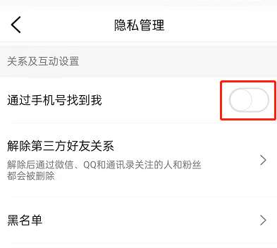 3、下滑找到通过手机号找到我,关闭右侧开关即可。