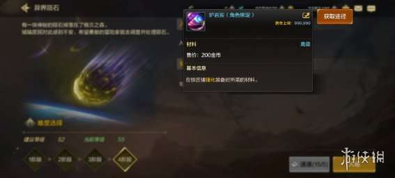 2、布万加的修炼场 预计会替代掉山脊的地位,炭的产量是大于山脊的,魔力结晶能多出50多个,并且有50级粉装流星光星陨刀。 3、 绿都冒险 只适合搬泰拉的玩家,没有其他的收益。 4、 邪龙墓地2图 掉落骨戒和正义手镯概率最大的地方。 三、 每日委托副本 异界陨石 尽量选择等级最高的时候来进行攻略。 每周只能进行9次,不能速通,不然材料会绑定角色。