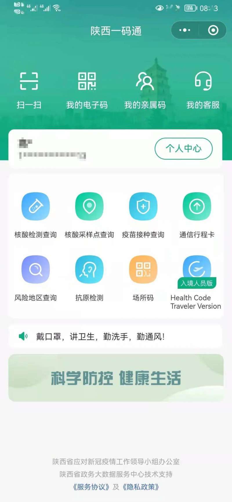 “个人中心”对应跳转至陕西一码通主页面,其他功能保持不变;