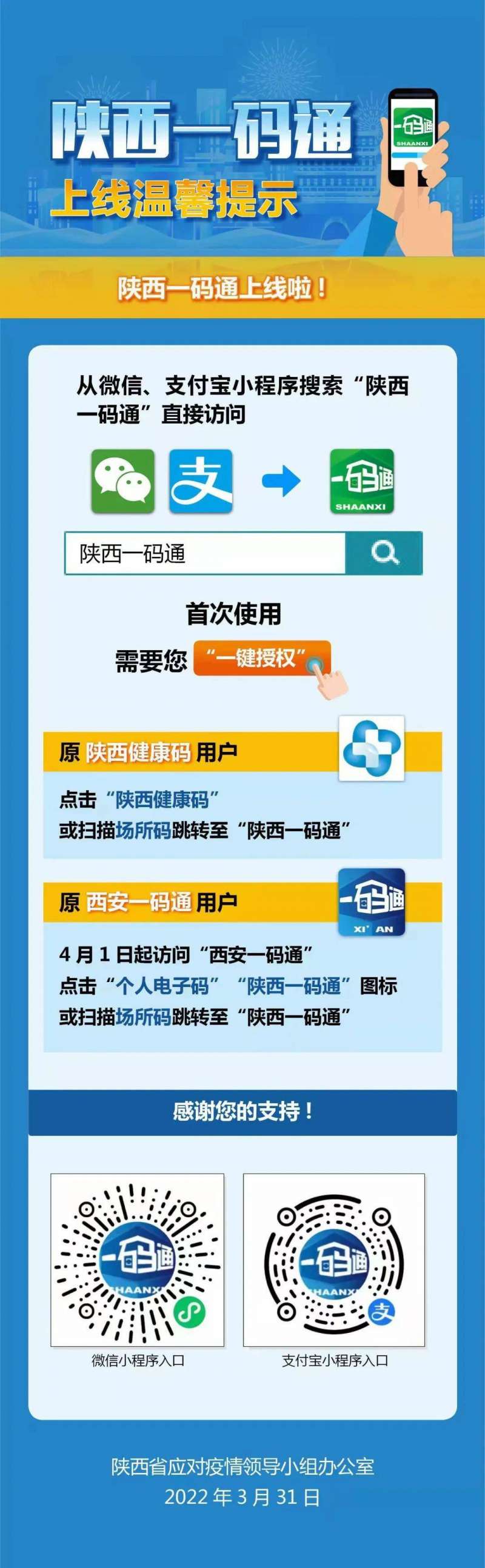 原西安一码通用户,4月1日起访问“西安一码通”,点击“个人电子码”“陕西一码通”图标,或扫描场所码,即可跳转至“陕西一码通”。