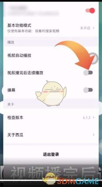 3、向上滑动设置界面至底端,将界面中【视频播完后连续播放】右侧的按钮打开即可。