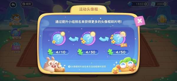 每天挑战活动关卡后,还可参与小组排名当天24点进行排名结算获得奖励,奖励可用来兑换活动限定头像框
