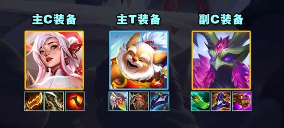 2.装备推荐 主c刀妹:无尽、羊刀、红霸服/杀人剑 副c沙皇:青龙刀,帽子,法爆/电刀 主T可酷伯:反甲、龙牙、救赎/狂徒 出装顺序:选秀优先拿可酷伯装备走连败,后续做刀妹的三神装!