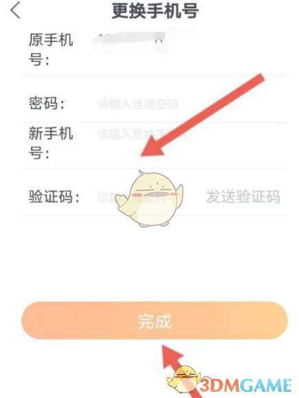 4、输入新手机号与验证码,点击完成即可。