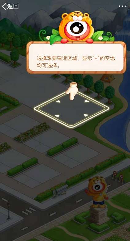 3、然后就能进入开启自己的建造之旅,这里提供了很多“+”号样式的空地,有大中小三种规格,点击想要建造的空地。
