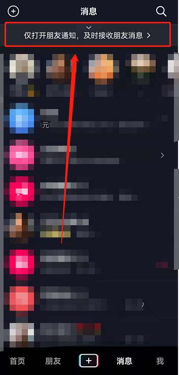 2、在消息页面上方可以看到仅打开朋友通知提醒,点击进入。