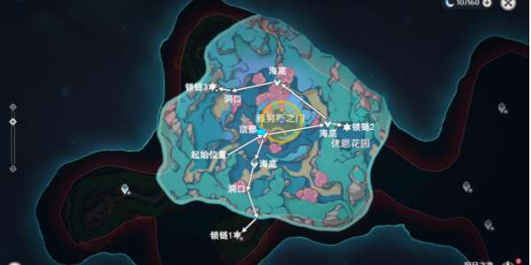 4.往地图的东北方向游,优先开启顶部锚点。