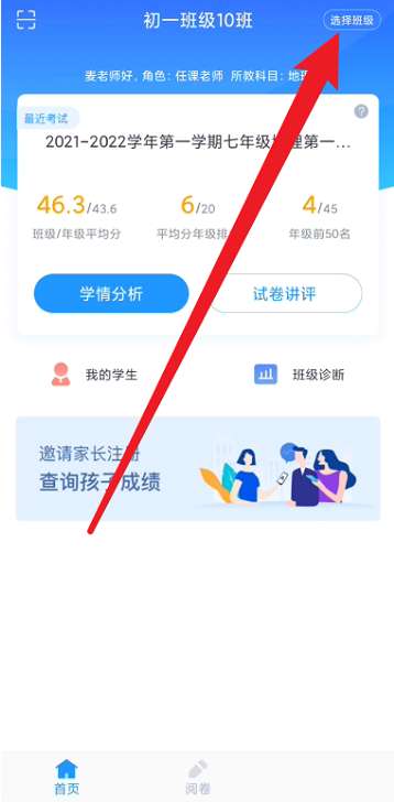 第一步:进入好分数教师版主界面里,点击左下的首页。