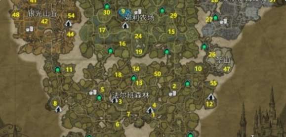 3、之后还需要获取【铁锭的配方】,这个配方需要击败盗贼boss才可以拿到,强盗大本营的位置在法尔班森林和邓利农场之间,河水边上14处,如下图: