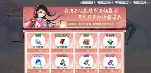 在将云仙花炼制后即可获得云仙露,可供兑换补天丹、高级招募书、庚精等多种稀有道具!