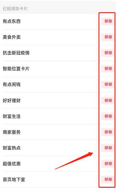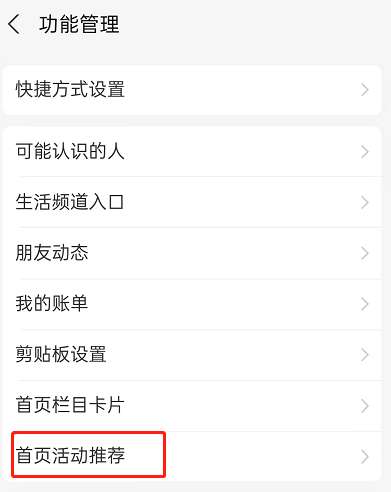 5、移除好卡片后,我们返回到功能管理页面,点击进入首页活动推荐。