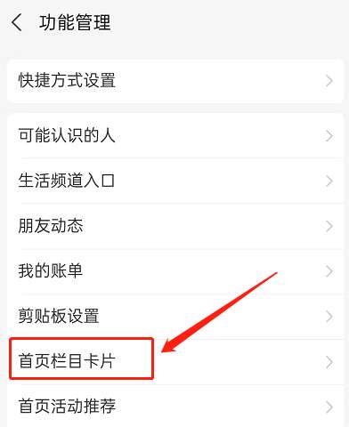 3、点击进入首页栏目卡片。