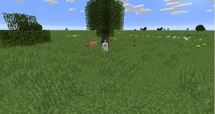它无处不在,只要有充足的阳光与草地,羊就会像其他动物一样悄悄的生成在你的身旁,在树下自然生成的白色与黑色的羊。