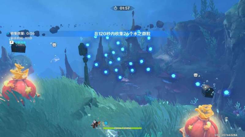 限时挑战:在120秒内收集26个水之微粒;(此处收集一箭穿心的动画很不错)
