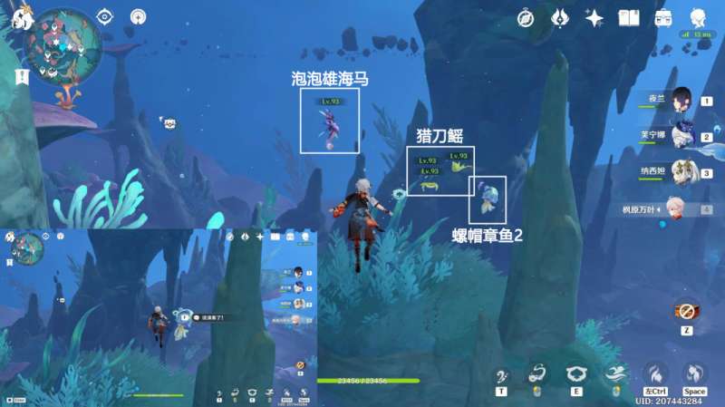 前往螺帽章鱼1,利用异色水母能力,击败泡泡雄海马和猎刀鳐;