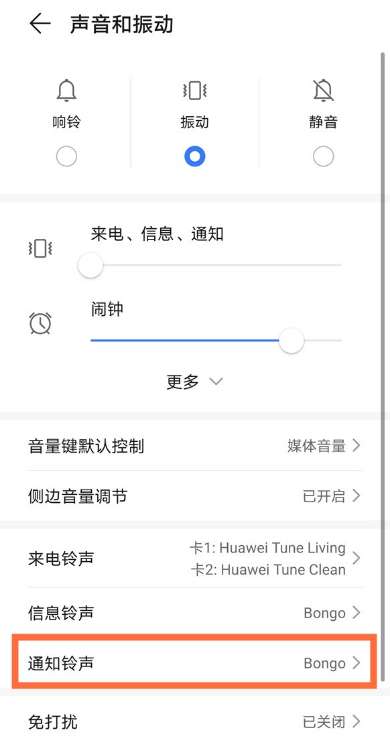 1、华为手机:点击设置-声音和振动-通知铃声,自主选择铃声即可。