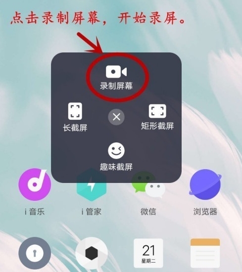 2、在弹出的窗口中,点击“录制屏幕”即可进入手机录屏界面。