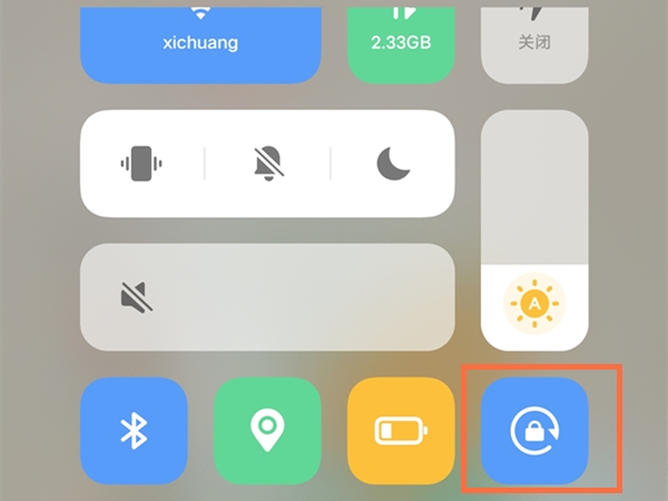 3、或者从手机屏幕顶部右侧下滑呼出快捷中心,点亮【竖屏锁定】图标即可。