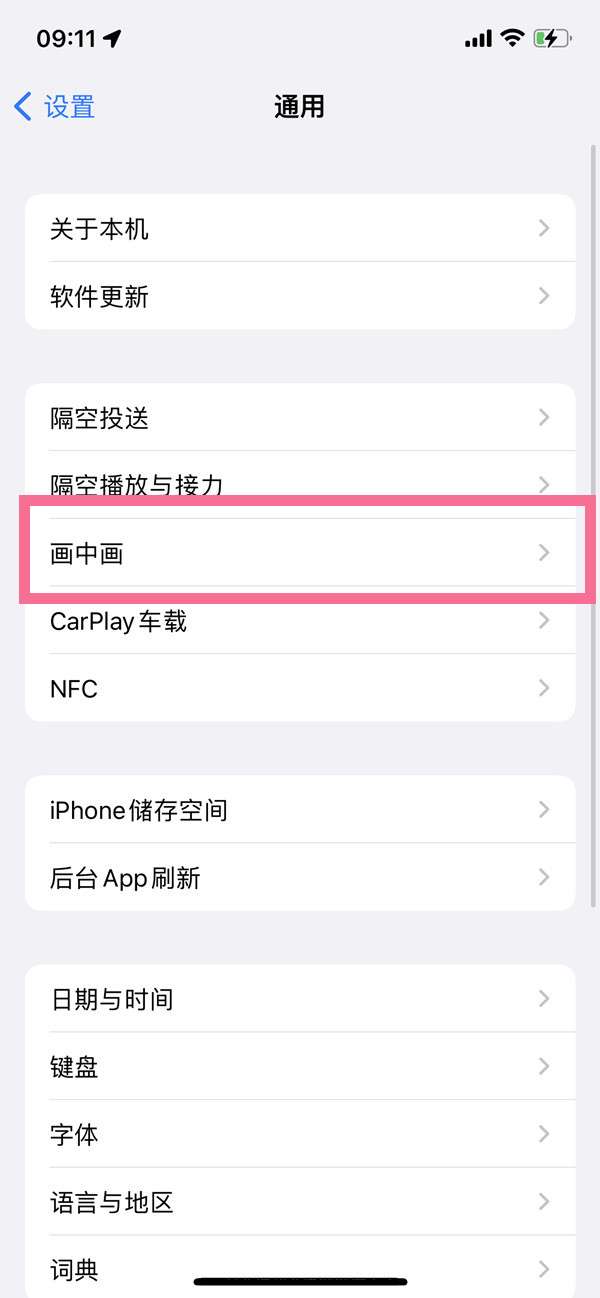 2、选择【画中画】,将自动开启画中画右侧开关开启即可。