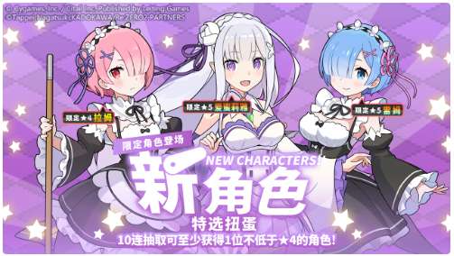 ◇12月15日全新联动限定★5角色「爱蜜莉雅」、「雷姆」,限定★4角色「拉姆」将加入「新角色特选扭蛋」且获取概率提升!快将远道而来的她们招募进队伍中吧!